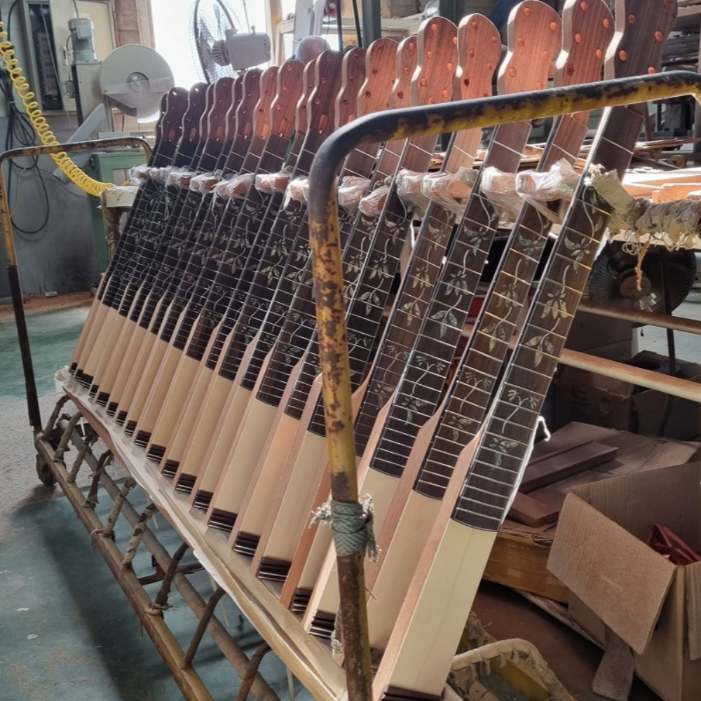 We control the entire production process, from personally purchasing raw materials to building, assembling, and finishing guitars in our own facilities. Our passion for excellent technology and good tone is evident in the high-quality guitars we produce.